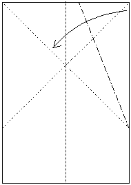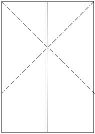 1) Das Papier wird der Länge nach gefaltet und wieder aufgefaltet.